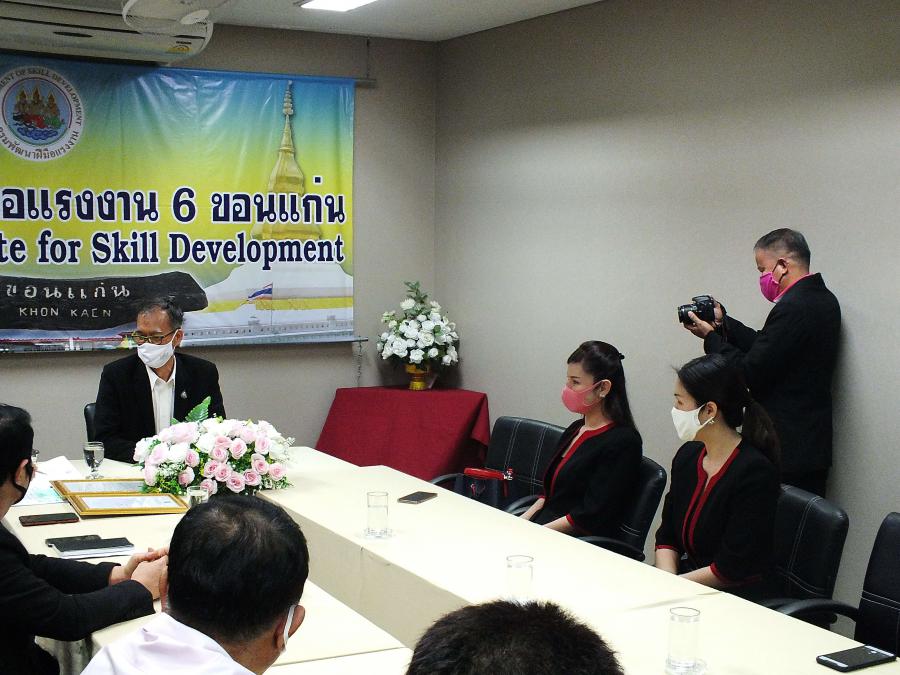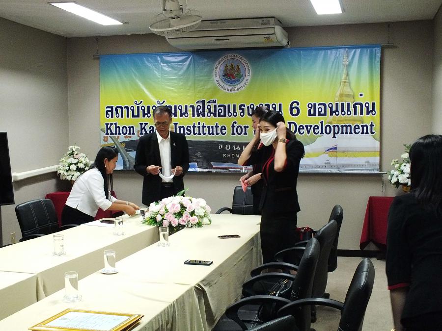 ดร. ณัฏฐินี รัชตเมธี (ผู้รับใบอนุญาต) และ นางสาว ดุสิตา สิทธิเกษร (ผู้อำนวยการ) พร้อมด้วยตัวแทนคณะครู วิทยาลัยเทคโนโลยีการจัดการขอนแก่น เดินทางไปรับมอบใบอนุญาตเปิดศูนย์ทดสอบมาตรฐานฝีมือแรงงานแห่งชาติ ณ ที่สถาบันทดสอบฝีมือแรงงานแห่งชาติ S:0